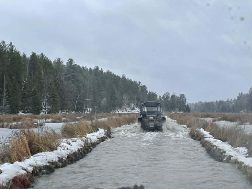We had an amazing group of people come and brave the cold November weather on our end of season ride. Everyone enjoyed coffee, hot chocolate & lots of donuts before we headed out. We drove through everything from dry trails, to deep icy water covered trails to snow covered before we were finished. On our way back we stopped to warm up and have lunch at the Sharbot Lake Inn & Pub. As always the food was delicious. Our 50/50 winner went home with $295.00. Congratulations. One of our lucky members had their lunch paid for by the Pub. Thank you Mathu for your generous offer.